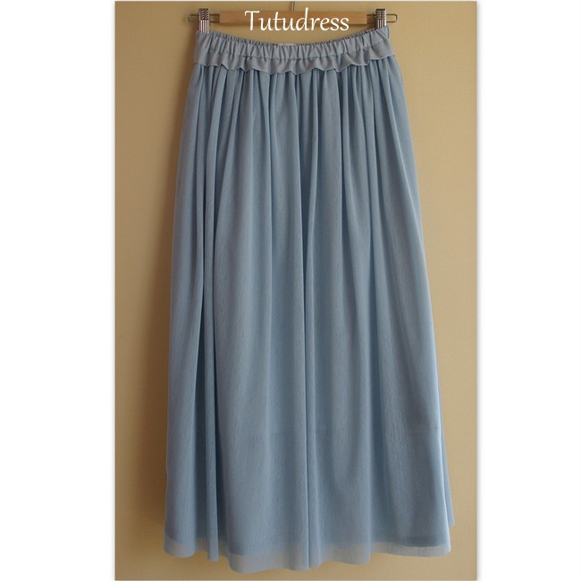 新商品入荷致しました。 オンラインショップはこちらからどうぞ。 http://tutudress.shop-pro.jp/ 今回、一枚のみの特別価格販売となります。 上品なライトブルーグレーカラー。 コットン100%のチュール使用で、とてもナチュラル。 ナイロンチュールの様な広がり、ボリュームはございません。 中のスカートは、前が短く後ろにかけて長くなるデザイン。 肌に触れる生地は、海のブロードと呼ばれる肌触りの良いコットン。 前スカート丈(ゴム下より)約60cm 後スカート丈(ゴム下より)約80cm チュール丈約82cm ウエスト 〜1...