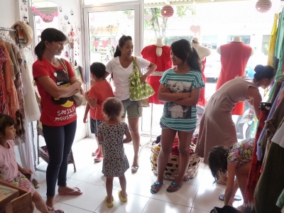 先日のブティックの模様!ゲストがたくさん!ブティック満員でした!ふふふ。ちびっ子達がお母さん達とやってきたー!ちびっ子もシューズをトライしたいーー!と。AYUもQ.HEARTの大ファンになってくれました。どれもこれも似合うー。全部、新作より。ハート・マキシ・ワンピース。ヴィノ・トップにマキシスカート!コーディネートばっちりです!このマキシスカートは、人気になるだろう!と確信してます。私もターコイズを入手しました。たまにはこんなワーワーブティックも楽しいものです!JUGEMテーマ:気になるレディースブランド・...