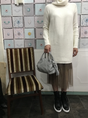 JUGEMテーマ:コーディネート ロングニット 19800円(ITALY) チュールスカート 19800円(ITALY) BAG(完売色) スニーカー 28000円(ITALY) 切り替えリブが素敵です その他カラー:レッド 少しラメプリントになっていて春にも使えそうです☆ 広がりすぎない大人チュールスカート &...