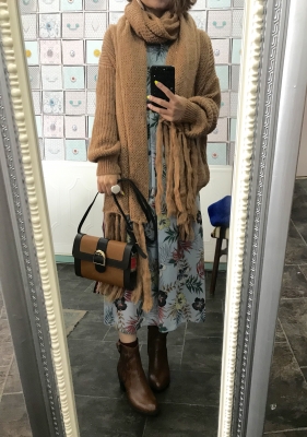 JUGEMテーマ:コーディネート ワンピース 26800円n(ITALY) ニットカーディガン 16800円(ITALY) ロングマフラー 12800円(ITALY) BAG 15800円(ITALY) ブーツ 38000円(ITALY)税別価格 とても柔らかいレザーで安定感のあるヒールです ブルーニットにもウエスタンを...