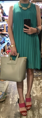 JUGEMテーマ:コーディネート 綺麗色ワンピースにはアクセのセット付けがオススメです ワンピース 16800円(ITALY)→期間限定30%OFF BAG 22800円(ITALY) バングル 2900円 ネックレス 12800円(FRANCE) イヤリング 5900円(FRANCE) サンダル 28000円(ITALY) ※SALE価格商品以外税込み価格 やっぱりワンピースは涼しくてやめられない このグ...