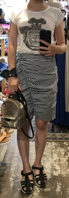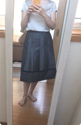 少し前に買っておいたスカートを履いてみました。 写真だけ撮ってまだ履いていなかったこれ。 黒いカットソーと合わせようかと思っていたけど、 この季節に黒と黒じゃ暑苦しいですからね・・・ トップスをシルクのカットソーにしましたが、 裾をどう扱うか迷いました。 このスカート、ハイウェスト気味なので、 中に入れるとちょっと...