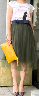 JUGEMテーマ:コーディネート デニムベルト付チュールスカート スカート 24800円 くろねこTシャツ 6900円 BAG 12800円 パンプス 25000円 ※すべてITALY 白Tは何枚あっても使えます 取り外し可のデニムベルトはワンピースなどにも...