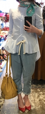 JUGEMテーマ:コーディネート ウエストリボン コーデ ブラウス 8900円 パンツ 16800円 ストール 6900円 BAG 19800円 スニーカー 24800円 ※すべてITALY 半袖ブラウス ジーンズや黒パンツにも合わせたい ストレッチがきいています パンプスでもスニーカーでも ...
