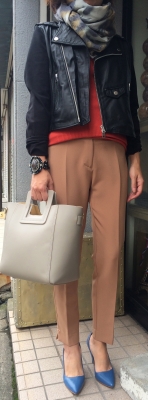 JUGEMテーマ:コーディネート ストレッチパンツコーデ タートルニット 12800円(ITALY) ライダースジャケット 39800円(ITALY) ストレッチパンツ 9800円(ITALY) レオパード柄ストール 6900円(ITALY) ブレスレット 19000(FRANCE) 2WAYBAG 22800円(ITALY) パンプス 28000円(ITALY) 袖の部分は厚手ストレッチ生地でハード過ぎず合わせやすいです レザー部分とても柔らかいです ...