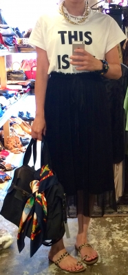 JUGEMテーマ:コーディネート ロゴTシャツ 6900円(ITALY) スカート 18000円(ITALY) ネックレス 7900円 イヤリング 8900円(no-na) BAG 15800円 スカーフ 5900円(ITALY) サンダル 16800円(ITALY)→期間限定50%OFF 白Tとてもに合います マリンカラーのスカーフで夏らしく &nbs...