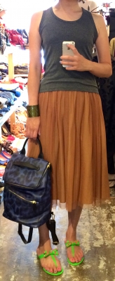 JUGEMテーマ:コーディネート チュールスカートでカジュアルコーデ スカート 22800円(ITALY) バングル 5900円(FRANCE) イヤリング 8900円(FRANCE) BAG 39800円(ITALY) サンダル 8900円→期間限定50%OFF ブログをみた方のみSALE除外商品の10%OFF今月末まで続行中です☆ タンクトップ×チュールスカー...