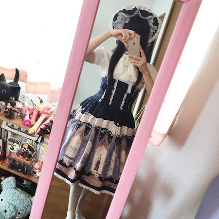 予約していた「The grace〜旅立ちの讃歌〜」を引き取ってきたので早速着ました。 ボンネットとスカートで、色は紺色。 ボンネットが思いの外大きいしボーン入りのスカートが抜群に苦しいけど可愛いから許す。コルセット風スカート本当に可愛い。APのコルセット風スカートは最高。 しかし久々にロリータしたら疲れたな…。 ウィッグだったら完全に死んでいたと思うので過去の自分すげーなって改めて思った次第です。