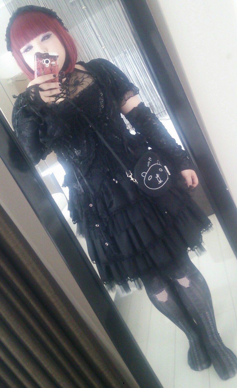JUGEMテーマ:コーディネート これで一旦コーデ紹介はおしまいです。 最近なかなかおめかし出来なくてモヤモヤしてます・・・。 ↓ キャミソール、ビスチェ・・・Qutie Frash カーディガン、アームカバー・・・FRILL スカート・・・BLACK PEACE NOW ヘッドドレス・・・OZZ ONESTE ソックス・・・Sixh. ポーチ・・・ナイトメアのグッズ 友人と一緒に魔女の秘密展とナイトメアのライブを観に福岡へ行った時の服装です。 (本来行く予定だった地元公演が地震の影響で延期になってしまったので急遽参戦するこ...