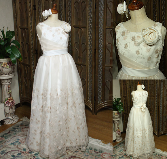 ”The Rabbit Closet”コンクール&発表会ドレス コレクション! 中学生や高校生、150cm、160cmのジュニアサイズドレスをご紹介! 東京都のお客様からオーダーメイドドレスのご注文を頂きました。 145cmサイズの子供用コンクールドレス。ロング丈ドレス。 ジュニアサイズ。中学生サイズでドレスを製作。 シャンパンカラーを基調に、 アンティークレースを使用した、”エレガントなオーダーメイドドレス”。 コサージュ構成で製作。”エレガントなアンティーク調”をテーマに製作...