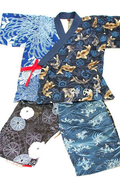 フルオーダーで息子様用にとお父様が色々とご相談下さり、 お作りさせて頂いた和柄甚平です!!! 鯉や波、桐、牡丹、菊柄に色々な柄生地を使用して仕立てました! 前と後ろで全然雰囲気が違います! どちらからでもお目立ち、確実です(*^。^*) 粋にカッコ良く仕上がりました! 息子様にたくさん着て頂けると嬉しいです(^^♪ オーダーを頂き本当にありがと...