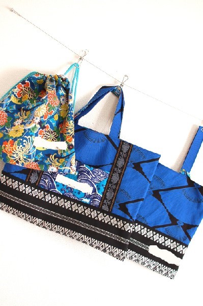 いつも本当に有難うございます(*^▽^*) リピーターのお客様の息子様に今回は通園バッグをお作りさせて頂きました。 おまかせ頂いてのオーダーなので、お好みかと思う色柄でお作りしました。 扇子柄のハンプ生地をベースに手提げバッグとシューズケースを、 お着替え袋は水色系の華やかな柄でお作りしました。 息子様、気に入って頂いてるでしょうか。 楽しく通園されていることを願ってます(^^)/ この度も本当に有難うございました! ●単品も可!★一点物・受...
