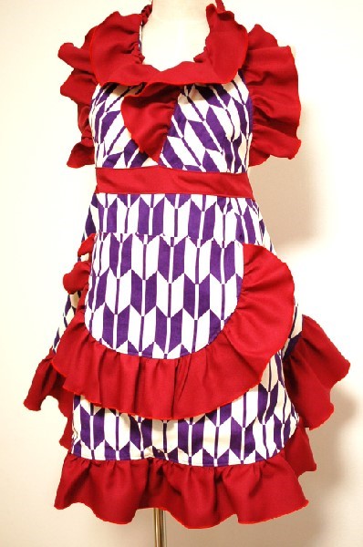 前回、ご紹介させて頂きました矢絣柄ふりふりエプロンの着用画像をお客様よりお送り頂きました(*^-^*) 小学4年生の娘様が可愛く着用して下さってます↑( *´艸`) 娘様、べっぴんさんでしょ!? この矢絣柄がハマってますね! 以前に娘様のお写真を拝見させて頂いてるので、紫の矢絣柄がお似合いだろうな。と、思ってお作りしましたが、 紫の矢絣柄で正解でした!!! めっちゃ良くお似合いで、今回もまた着こなして下さってます☆ フリルの赤・エンジ系...