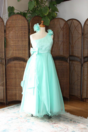 北海道札幌市のお子様からのご注文を頂いた子供用ドレス! ”大人っぽく!憧れのワンショルダーデザイン”!お子様のご希望で、デザインをさせて頂いた”子供用のオーダードレス”! ハイライトの効いた”エメラルドグリーン”の素敵な印象を与えるドレス!ピアノの発表会とコンクール、演奏会にご利用頂いているドレスです。まだ幼く、子供体型でのワンショルダーデザインは、ゆとり分量を少なく、体のシルエットに合わせる形での製作。ご本人様にぴったりに仕上がりました。 ワンショルダー...