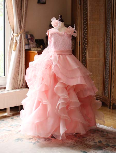 ピアノの演奏者用やアーティストのステージドレス、発表会やコンクールに出場する お子様にデザインをさせて頂いたジュニアサイズドレス。 優しいイメージの演奏曲にぴったりなオレンジ系のカラードレス!サーモンピンクの子供用ドレスです。 今回のお客様は、北海道伊達市にお住いの小学生低学年のピアノの演奏者に創り上げたドレス。”ピアノの先生のイメージ”や”お子様の好みのカラーとパーソナルカラーのご相談”、演奏曲のイメージを考慮したステージ映えのするドレスをご相...