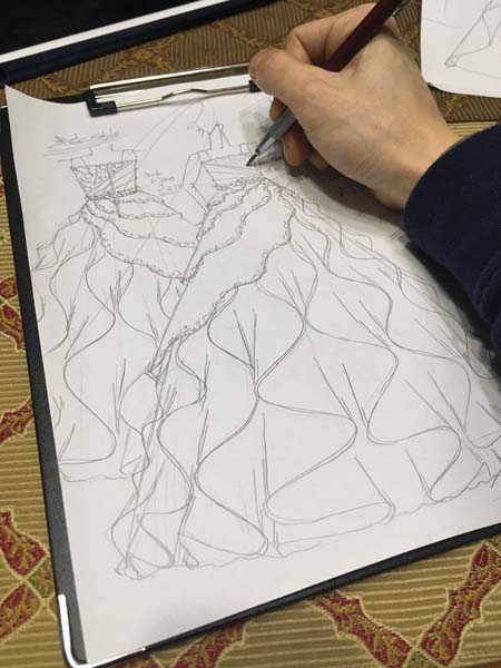 札幌市にお住いのヴァイオリンを演奏する中学生のお客様から ”演奏曲やイメージ、ドレスのデザインのご相談”! 153cmサイズのお客様。床上がり0cmでデザインをさせて頂きました。 現在、デザイン画を提案中です。本決定の際は、どのようにアレンジを行うかを最終決定ドレスを記載します。 札幌市内にお住まいとの事でしたので、”ウェディングドレスを製作するアトリエ”へご来店頂き、お子様理想の上半身デザイン、スカートシルエットとスカートデザイン、生地選びと”ドレスのお色”を選...