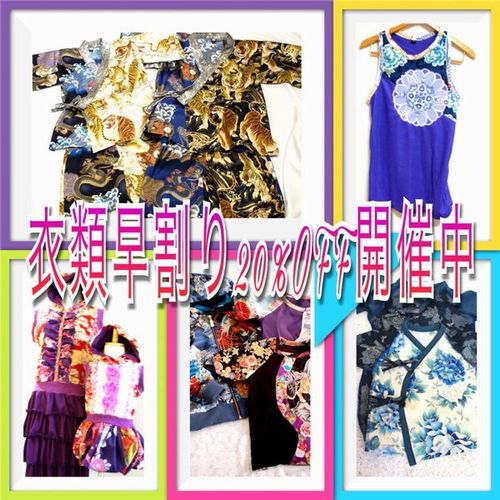 ★只今、早割オーダー衣類20%OFFを開催中!!!★ 早割オーダー衣類20%OFFを開催します! 4月中旬より順次、作製、発送予定です。 この機会をぜひご利用下さい。 本日より、2月5日23時59分まで予定してます。 詳細はこちらをお読みください↓ ●2月5日23時59分までの受付で、4月中旬より〜順次お届け予定です。 4月中旬より以前にお届けご希望の場合は20%OFFは適用となりません。 ※表示価格は通常価格ですので、そのままカートにてご注文頂き、ご注文時...