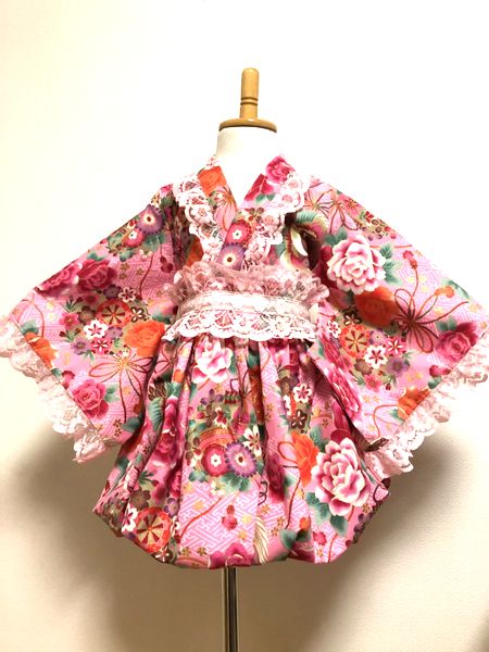 この度も誠にありがとうございます。 リピーターのお客様に孫娘様にと着物袖風の和柄ワンピースのオーダーを頂きました(^^♪ ご希望の柄生地をお選び頂き、そちらで総和柄でお作りいたしました! レースもピンク系でまとめてみました! 上品で華やか、可愛く仕上がりました。 後ろで縛れるようにご希望でしたので、レースで縛れて、すっきり見えます('ω')ノ お正月、ひな祭り、七五三などにとたくさん着れます...