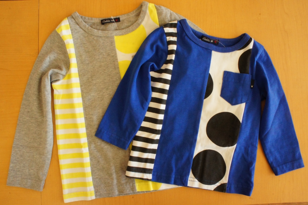 Caldia カルディアの切替ロングTシャツが入荷しました。 無地・ボーダー・ドット生地の組み合わせが目を引く商品。 胸ポケットには、飴も入ります(^^) 春先のお出かけにどうぞ♪ 2,000yen+税 入荷サイズ ブルー80-140cm/グレー100-140cm JUGEMテーマ:可愛い子供服&ベビー服