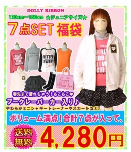 JUGEMテーマ:福袋(キッズ&ベビー) 春先まで着れるブークレーパーカーが入っているDolly Ribbonのお得な7点セット。 パーカーのほかに、Tシャツ2枚、トレーナー、タンクトップ、スカート、ニーハイが セットになっています。 通常5400円のところ、4280円で送料無料! 130cmと140cmのみ、在庫がありますので、ご検討中の方はお早めにどうぞ。 ⇒アフターSALE☆送料無料☆秋冬福袋7点セット♪ピチレモン掲載商品☆Dolly Ribbonドーリーリボン☆130cm・140cmパーカージャケット&ミニシャギートレーナー&スカー...