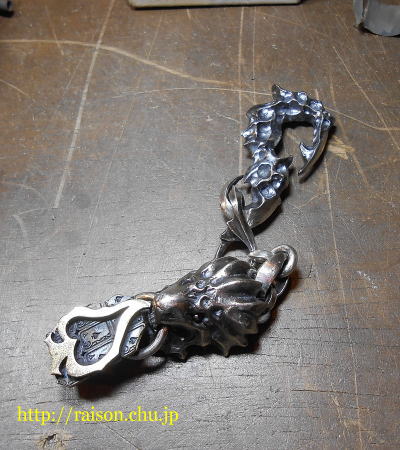 JUGEMテーマ:ジュエリー・アクセサリーの修理&カスタムリフォーム ※12/31〜1/4 までお休みをいただきます。 かなり厳ついキーリングになります。お客様の私物で、別のアクセをパーツとして使用し、組み合わせて欲しいとのご依頼でした。 パーツ間の隙間が狭く、ごっつくて硬いので例えば丸カンの継ぎ目をロウ付けする時など、合わせ目をピッタリにするのが大変でした。笑っちゃうくらい力技での作業になりまして、実際、自分は笑いながらやってましたw それでもなんとか綺麗に仕上がり、お客様にも喜んでいただけたので...