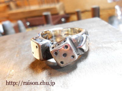 JUGEMテーマ:ジュエリー・アクセサリーの修理&カスタムリフォーム ダイス(サイコロ) のリングです。サイズを変更しました。切ってから継ぎ足して大きくしてありますので、ロウ付けと燻しと磨き直し。工賃は 5,000yen でした。 あまりに元のサイズからかけ離れた直しの場合、見た目の雰囲気が結構変わる事もあります。普通はそこまでの調整ってあまりないのですが、たまに頼まれる事もあります。状況次第で料金は上下しますので、現物をお持ちになってのご来店か、画像付きのメールでお問い合わせください。 メールの場合...