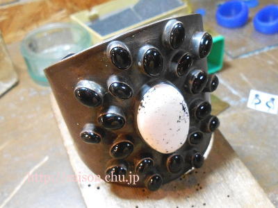 JUGEMテーマ:ジュエリー・アクセサリーの修理&カスタムリフォーム お預かりしたインディアンジュエリーのバングル。太陽モチーフで石を配置してありますね。全体がかなり黒くなってしまい、できるだけ綺麗に磨き直して欲しいとのご依頼でした。 だけど磨きづらい石枠の隙間と全体とで、あまり仕上がりの色の違いが出ないようにとのご希望ですから、その点に気を使って作業しました。 ポイントの番手を変えながら丁寧に両面とも磨きます。仕上げ後の画像と前と、見比べてみてください。見違えるようになりました(^.^) ...