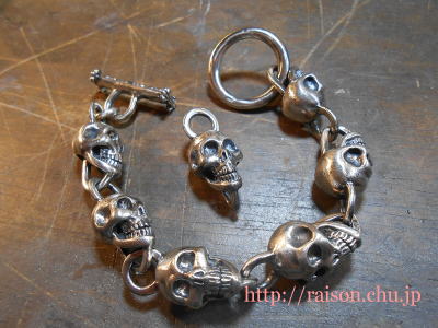 JUGEMテーマ:ジュエリー・アクセサリーの修理&カスタムリフォーム こちらはブレスレットのコマ詰めになります。お客様からのご希望通りにスカルをひとつ外してみましたら。。。きつくて余裕がありませんでした。そこでベストな状態になるよう、丸カンをひとつ作って追加しています。 結果は緩くなくきつくなく、とにかくピッタリ。千葉県の方なのですが、発送後、届いたとのお電話がありとても喜んでくださってました(^^) スカルをひとつ外し、ロウ付け & 丸カン制作とロウ付け。燻して全体の小傷を取りながらの新品仕上...