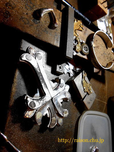 JUGEMテーマ:ジュエリー・アクセサリーの修理&カスタムリフォーム そろそろ何とか仕上げます、とてつもない重さのクロスカスタム。 裏抜きをそれ用に作ったシルバーパーツで埋め、ふたつを背中合わせにしてひとつのクロスに。凄い重さと大きさです。 ロウ付けなどきちんとするのが難しいものなので、どうしたら問題なく完成させられるか? しばらく悩んでいましたが、やはり答えはシンプルでした。 ここさえ越えればもうできたも同然てとこにいますので、頑張ります。 公式HP 『レゾンデートル』 オンラインショッ...
