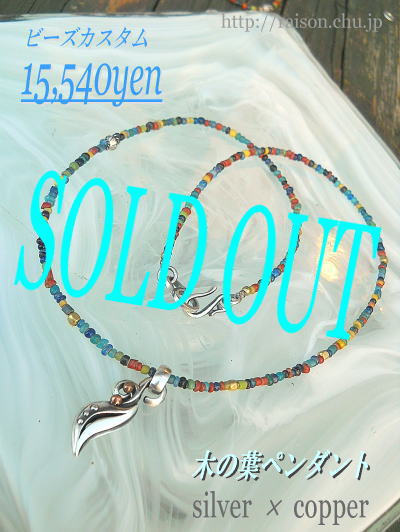JUGEMテーマ:オリジナルジュエリー・アクセサリー ※明日、6/6(金) 都合により休業致します。 『Flower Pueblo』 の当店限定カスタムの一点もの、木の葉ペンダントが売り切れました。素朴で美しいアフガニスタンビーズを使い、赤銅がアクセントになっているシルバー製のトップ。前々から気になって仕方なかった。。。というお客様がお買い上げくださいました(^^) 小粒で光が通るととても優しく柔らかく、綺麗に見えるビーズ部分は夏に最適なイメージがあります。もちろん季節問わずに違和感なく使えますし、主張し過ぎない...