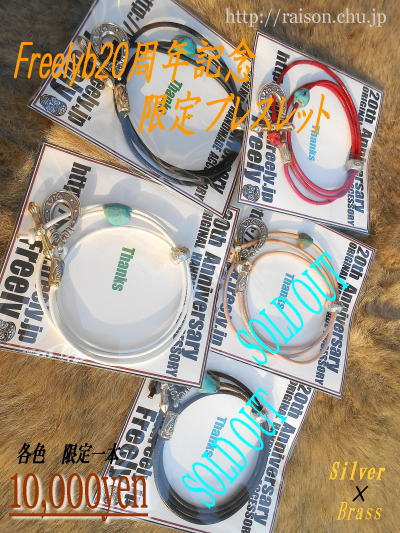 JUGEMテーマ:オリジナルジュエリー・アクセサリー オリジナルアクセサリー & レザーブランドの 『Freely』 20周年記念限定ブレスレット、全5色のうちブラックが売り切れました。残りはみっつ、ブラウン、レッド、ホワイトになります。 シルバー・真鍮・ターコイズを組み合わせたレザーブレスレットで、完全受注生産。店頭販売分として各一本ずつの入荷になり、追加生産はありません。興味のある方は残りの3色をお早めにお願い致します。 今回のお客様は岡山県の方で、父の日のプレゼントに。。。とご購入下さいました。...