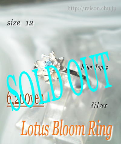 JUGEMテーマ:オリジナルジュエリー・アクセサリー 先日、『Silver Mate YUN』 さんの 蓮の花をモチーフにした指輪が売り切れました。一点物の当店限定品でした。 中央には小さなブルートパーズがセットされており、銀の白さによく映えてとても美しい指輪です。石は爪留めで比較的楽に取り外し可能なので、後からのサイズ直しも問題ありません。 工房では色々な作品を取り揃えております。各種フルオーダーもいつでも受け付け中です。 お客様こだわりの世界にひとつを心を込めてお作りさせていただきますので、是非ご検討く...