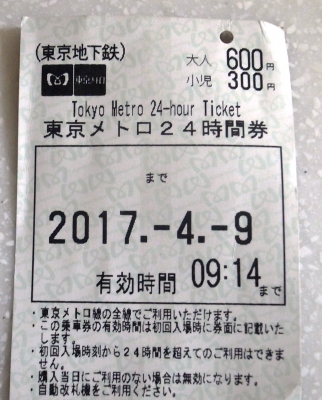 JUGEMテーマ:ハンドメイド小物 今日は、(私にしては)色々と動き回った1日でした。 そこで、活躍したのがこのキップ。 営団地下鉄24時間券。600円也。 1日、ではなく、24時間というのが、 かなりお得です。 今日だけでも初乗りばかりとはいえ、6回乗りました。 かなりお得です。 明日の午前中使うとは思えませんが、十分です。 で、その移動の合間をぬって縫い物。 今日はそのうちの一つを。 裏は、 snowwingさんのぽちゃポーチ12cm。 やっぱり縫い...