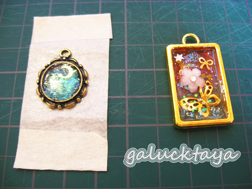 右側: ボンヤリと、春っぽい色を配置して、手元にちょうど 蝶々のメタルパーツがあったので、100均の花パーツと一緒に封じたところ。 まだまだ盛るよーーー。 左側: 2個目の宇宙塗りに挑戦。 1個目より勝手が分かってきたので、マニキュアでこんな感じに塗り塗り。 まだまだ盛るよーーー。 JUGEMテーマ:ハンドメイド小物