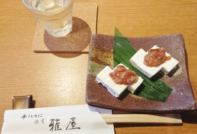 JUGEMテーマ:ジュエリー 久々の来店 甲子園近くの蕎麦屋「雅屋」さん いつの間にか移転しておりました と言っても、前のお店からほど近くですが やっぱり、ここのお蕎麦は美味しい! とっても好みのタイプです 蕎麦前も充実してますし お酒がハーフサイズからあるのも嬉しいところ いろんな種類を少しずつ飲めますから(*^^)v 美味しいアテで一杯飲みながら、お蕎麦を待つ これぞ至福の時間...