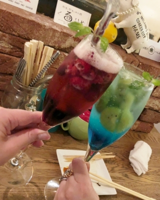 JUGEMテーマ:ジュエリー 乾杯〜! 女子会っぽく華やかなカクテルで(*^^)v 友人はベリーベリー、ワタクシはアクア きゃー女子〜〜(#^^#) ・・・この前にふたりとも生ビールを ジョッキ2杯飲んでますが(^▽^;) さて、本日はこちら フローライト 6.45ct フローライトと言うと グリーンやブルーを思い出しますが 実は黄、緑、青、紫、褐色、灰色など たくさんの...