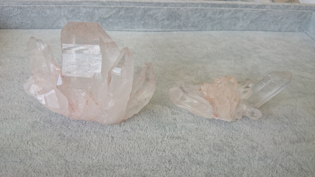JUGEMテーマ:天然石 本日の石は… 小さいクラスター類です ・ガネーシュヒマール産 ヒマラヤ水晶 ・アーカンソー州産 クラスター ・四川省産 クラスター 5Aクラス ・マニカラン水晶 ・レーザー サザレと一緒に飾るのに良いと思い、幾つか仕入れました こんな感じに↓