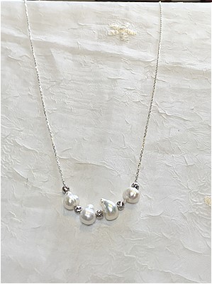 JUGEMテーマ:シルバーアクセサリー ご無沙汰しておりました。 今月の終わりにデパートの催事に出展することになり、ずーっと作品作りをしてたもので~_~; 生徒さんの作品も写真だけ撮ってアップ出来ないでいました。 バロックパールとミラービーズのネックレス パールとシルバーのミラーボールビーズを、チェーンに直接通しています。 パールの穴はドリルで広げて通しました。 特に、彫金やシルバーラインワークの技法を使っているわけではありません。 材料を提供し、こまごまと...