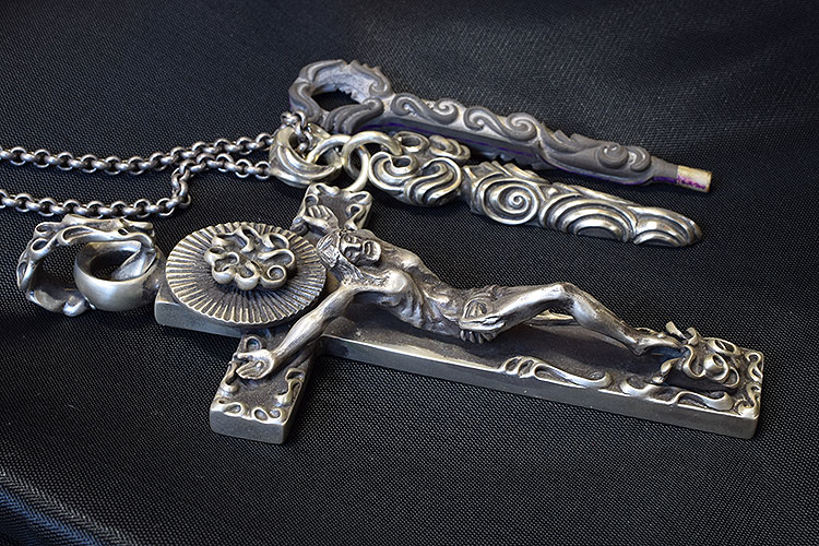 http://www.signalred-silver.com 製作したはいいが、大きさや重量があり身につけた方がストレスに感じると思う作品があります。 当時は完全な自己満足で製作し販売のことは考えもしなかったのですが、今となっては反省しきりです。 下の画像、キリストのペンダントは約3年半ほど前に製作したものです、悩みましたが商品にはしない予定でいます。 師匠の反応は「誰が身につけるんや、プロレスラーなら似合うんとちゃうか。」的な感じでした。 今では完全に同意です...
