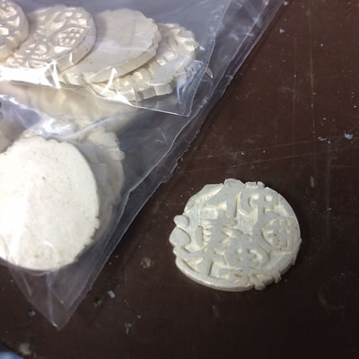 息子や嫁がお世話になってる方々への恩返しプレゼントです 原型からシルバーに量産。 これを元のパーツとして制作します。 とりあえず一個磨いてみました。 筆のイメージで文字を下げて黒くするって方法もアリですね。 墨っぽくなります。 チェーンループを付ければペンダントにもなるので、団体で用途に応じて制作したりも原型の形によっては可能ですね。 人によって着け方が違うってのも面白いと思います 今回はピンバ...