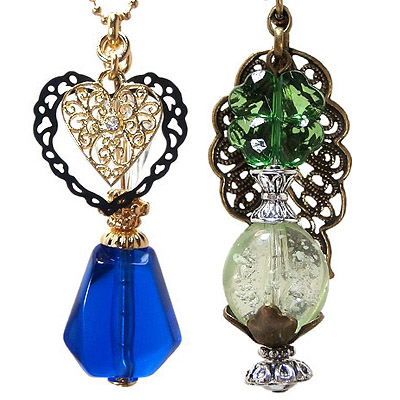 JUGEMテーマ:ピアス♪リング♪ネックレス♪ すごく久しぶりになりましたが、 今日は小瓶シリーズの新作を2点アップ致しました! トップページのおすすめ一覧に掲載中です♪ 透明で、ずっとずっと遠くまで続いていそうな深いインディゴブルーの小瓶と、 木漏れ日の森が姿を変えたような、きらきら輝くグリーンの小瓶です。 どちらもハート&クローバーの幸せモチーフを使ったお品で、 この春に新生活に突入した皆様へ、良い事がたくさんありますよう お守りとしてお届けしたいと思っ...