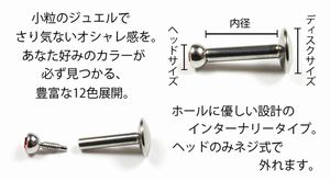 セカンドピアス用のボディピアス検索で見つけちゃいました。 コレ↓ ジュエルインドームラブレット 18ゲージ 16ゲージ 14ゲージ 12ゲージ 316Lサージカルステンレス... 耳たぶの後ろにくる部分が平ら(たいら)なので、邪魔になりません!! こういう、後ろが平らなディスクタイプのピアスを「ラブレット」というらしいです!(←自信満々。笑。) オマケにこれだと、後ろの穴から前に通して、顔側(前面)でネジこむタイプなので、ちょっとは容易かも?? ↑見てわかるとおり、「インターナリー」と呼...