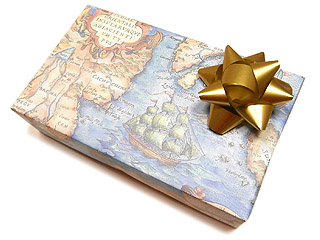 こちらは、先日お客様にお届けした「お任せラッピング」のひとつです。 小瓶シリーズと同じ“宝の地図”もようの包装紙に 金のリボンを飾ったプレゼントボックスに仕立ててみました。 ラッピングの種類はいくつかご用意しておりますが サイズが特別大きいものだったり、 2つ以上のものを一緒に包みたいというご希望があった際には 「お任せラッピング」をお選び頂ければ、 こちらのように個別にご対応させて頂いています♪ 贈り物にもご活用頂けたら幸いです。ラッピングについてはこちら JUGEMテーマ:ピア...