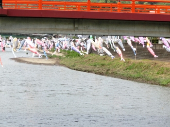 JUGEMテーマ:地域/ローカル JUGEMテーマ:日々徒然 5月の節句。 こどもの日。 長男誕生で鯉のぼりを作り、その年だけではもいったいなにので,いつのころからか川の上を大きなコイが泳ぐようになりました。 阿蘇の杖立温泉が発祥でしょうか? これは高橋神社のよこの川 坪井川です。 川の両岸にロープを張って1本に30体くらい,イヤもっとかも。それが10列くらいあったようです。 年々、列が増えていませんか? いや圧巻ですが。。。ややグロテスク。 ちょっと色がさめてきたコイもあるようです。 車から降り...