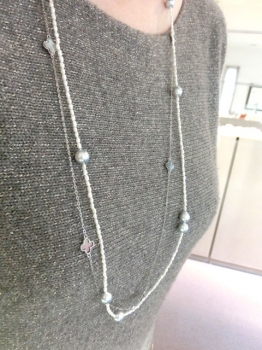 JUGEMテーマ:ファッション JUGEMテーマ:ピアス♪リング♪ネックレス♪ ロングネックレスが人気です。 ボリューム感の少ないネックレスは重ねづけで思わぬおしゃれな 演出が出来ます。 ブラックシェルのホワイトゴールドネックレスの長さに合わせて 極小淡水パールと大きめのアコヤナチュラルパールで同じく ネックレスを作りました。 重ねることでほどよいボリューム感がでて新たなデザインも 加わってジャケットインに映えそうです。 タテのラインが強調されることで着こなしをすっきり見せて くれるとい...