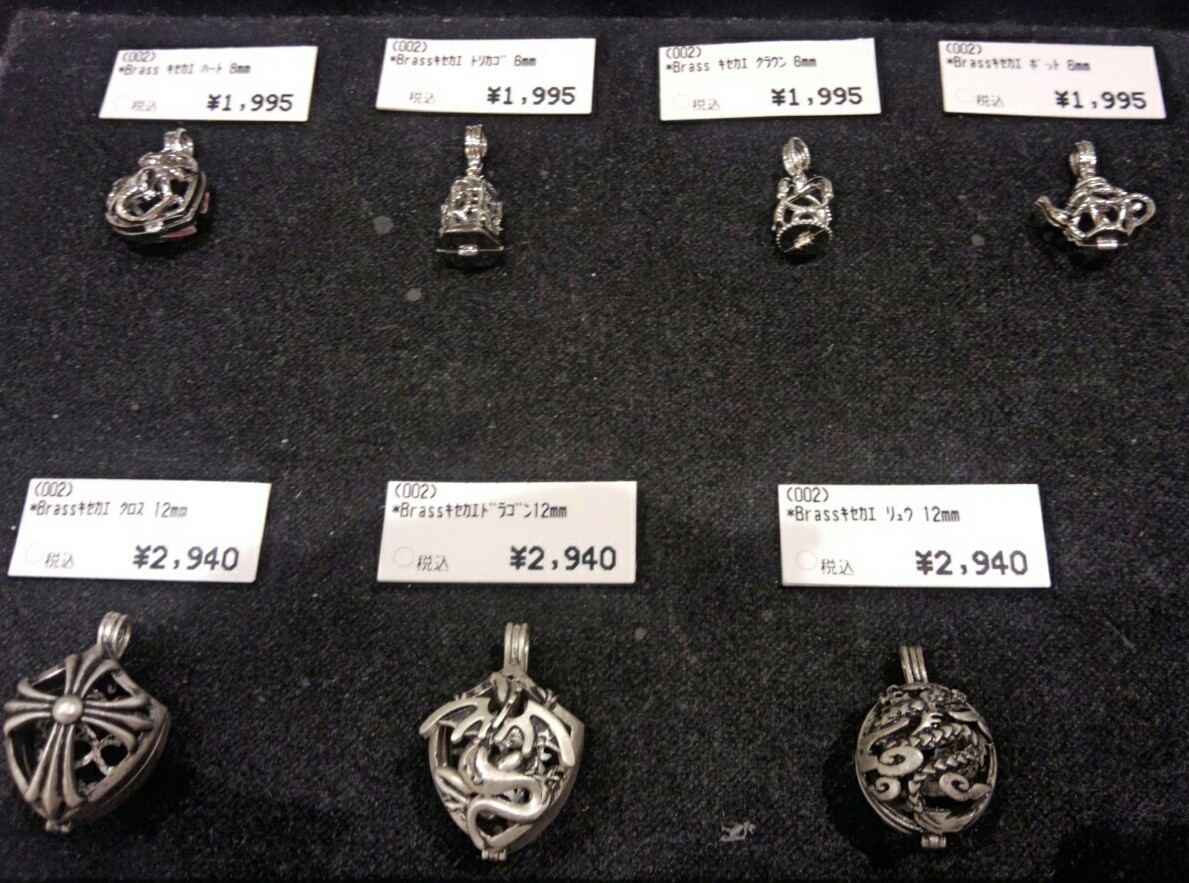 JUGEMテーマ:ピアス♪リング♪ネックレス♪ こんにちは皆様、夏は満喫されましたかセミの大合唱も落ち着き、まだまだ酷暑は続きますがも近づいてきましたね 本日入荷したばっかりの新商品のご紹介をさせて頂きますコチラ、ペンダントトップなんですけど着せ替え式になってる代物上段 左から ハート、鳥かご、王冠、ポット下段 左から クロス、ドラゴン、龍この中にお好きなビーズを入れてお客様のお好きな感じにカスタマイズできますチェーンをトップから外さないと開かない仕組みになっておりますので、気付いたら石が落ちて...