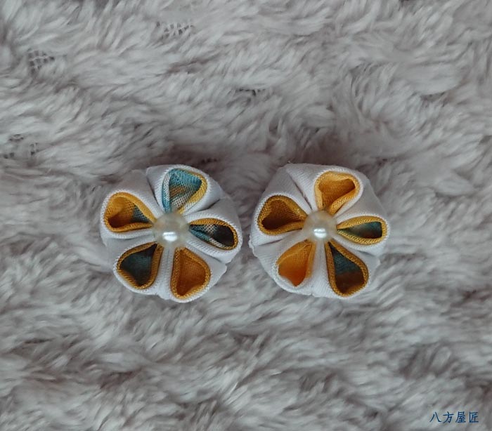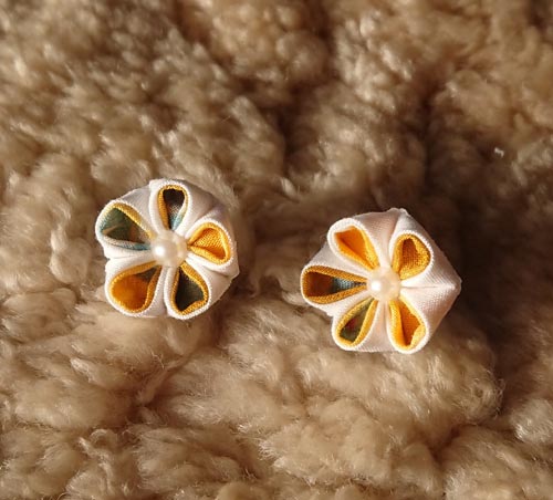 JUGEMテーマ:ハンドメイドアクセサリー こちらの商品、只今発売中です! つまみ細工の小花です。 裏の金属の部分、耳に当たるところですね。 そこはフェルトで優しいタッチに...