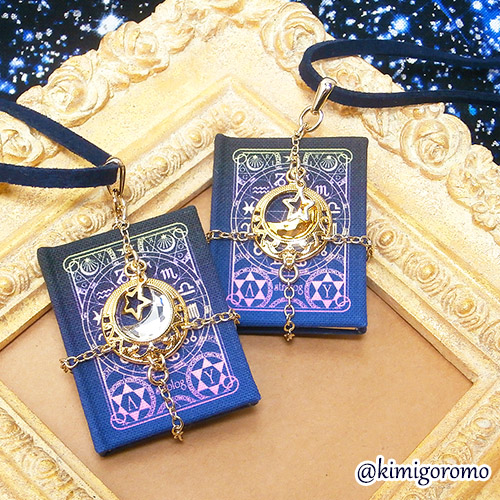 JUGEMテーマ:ハンドメイドアクセサリー 今週末は、東京板橋区のハンドメイド雑貨屋・子猫堂さんにお預けしている作品の入れ替えを予定しています! 前回の補充から間が開いてしまったのと、クリスマスシーズンという事で、少しまとまった数の魔法書ペンダントをご用意しました。写真の「テトラビブロス別巻〜ワンス・イン・ア・ブルームーン」もそのひとつですが、表紙の三日月のスワロフスキークリスタルが金と銀の2色展開です!並べて撮ってみたらなんだか双子みたいになりました。装丁の鮮やかな青にゴー...