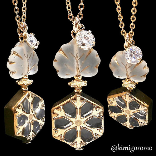 JUGEMテーマ:ハンドメイドアクセサリー 本日は冬をテーマにした小瓶ネックレスの新作をアップしました! 当店の作業場も先週から本格的に暖房をつけ始めたのもあり、ちょうど今ぐらいからのコーデに合わせたい雪の結晶モチーフを主役にデザインしてみました。お色は白とゴールドのみを使い、ちょっと寂しげだけれど空気が澄んでいて清々しい冬の景色を表現しています♪ワンポイントはキュービックジルコニアの一粒石で、上品かつ高級感のある仕上がりです。 →こびんNo.201の詳細はこちら ...