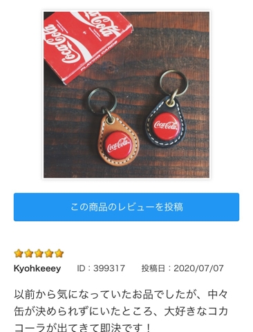 王冠キーホルダーのレビューをいただきました。ありがとうございます。 コカコーラが好きな方はいっぱいると思いますが、このボトルキャップを知っている方はほとんどいませんし、日本ではまず入手する事ができないコカコーラです。ガロン独自のルートで仕入れております。 以前から気になっていたお品でしたが、中々缶が決められずにいたところ、大好きなコカコーラが出てきて即決です! 予想以上のお洒落さで、とても気に入りました!他のコカコーラグッズと一緒に是非つけて、革の経...